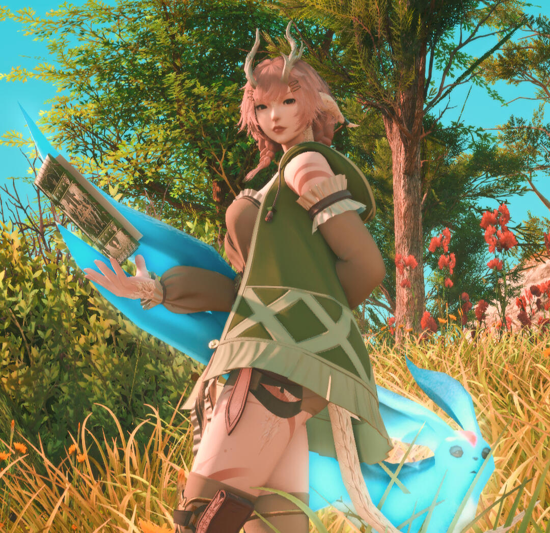 Herroo my fellow boba and cookie lovers! I am Luv Carina. You'll always see me gathering mats and crafting in the FC workshop. I am shy but I luv helping out. Feel free to send me a tell whenever you need help with anything, especially when it's an item but the market board is scamming you bad. Thing 1 is Sam, thing 2 is Carina.